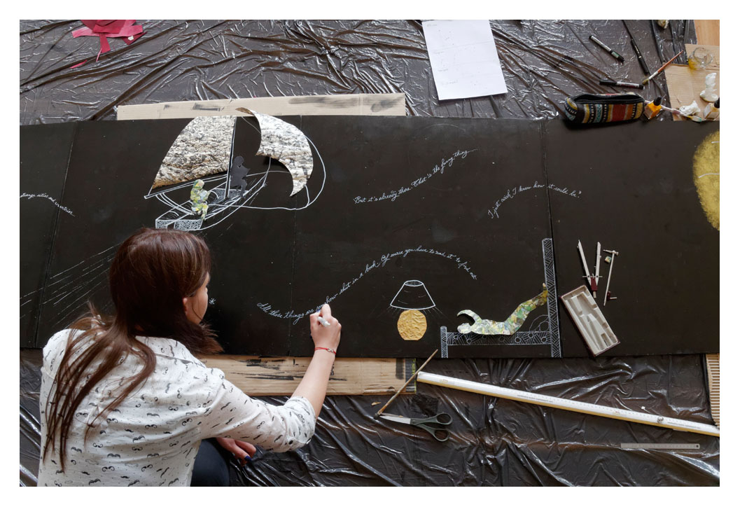 Cette création s’inscrit dans le cadre d’un projet Erasmus « Lecture, écriture dans un contexte de mutation numérique » qui veut interroger la place du livre et de la lecture dans la société du XXIème siècle.